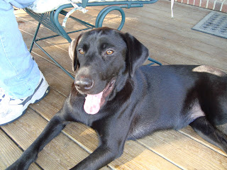Well my husband says I can last no longer than a year before adding someone new to the family. This is Sadie. We adopted Sadie from a gentleman who rescued a litter of black labs and is going overseas and wanted to find Sadie a good home. We were glad to help and she is fitting in just fine. The ironic part about it is, last year my black lab freaked out during a storm, hopped the fence and we never saw her again. The resemblence is uncanny. So yes, I am at it again and I don't think I will ever stop:)..*♥ ♥*¨¨*♥ ♥*¨¨*♥ ♥*¨